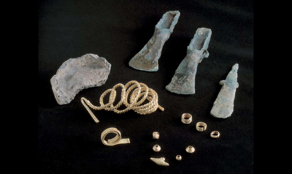 The Burton Hoard, Wales, containing multiple gold objects and bronze tools © Amgueddfa Cymru – National Museums Wales.
