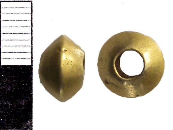 A biconical gold bead from Salthouse, Norfolk. Courtesy of the Trustees of the British Museum/Portable Antiquities Scheme.