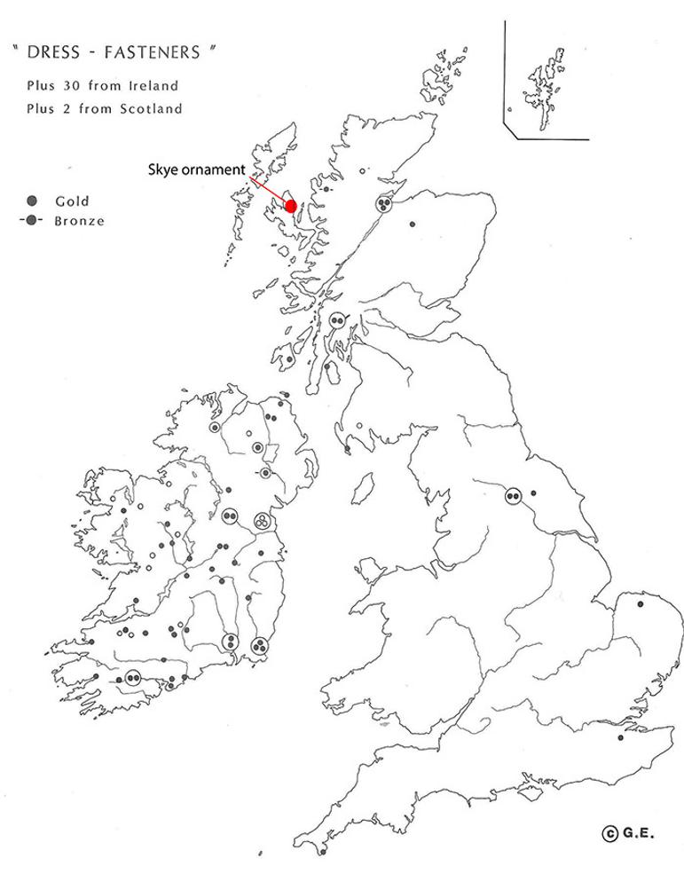 The distribution of ‘dress fasteners’ in Britain and Ireland (adapted from Eogan 1994, ‘The Accomplished Art’, Figure 40).