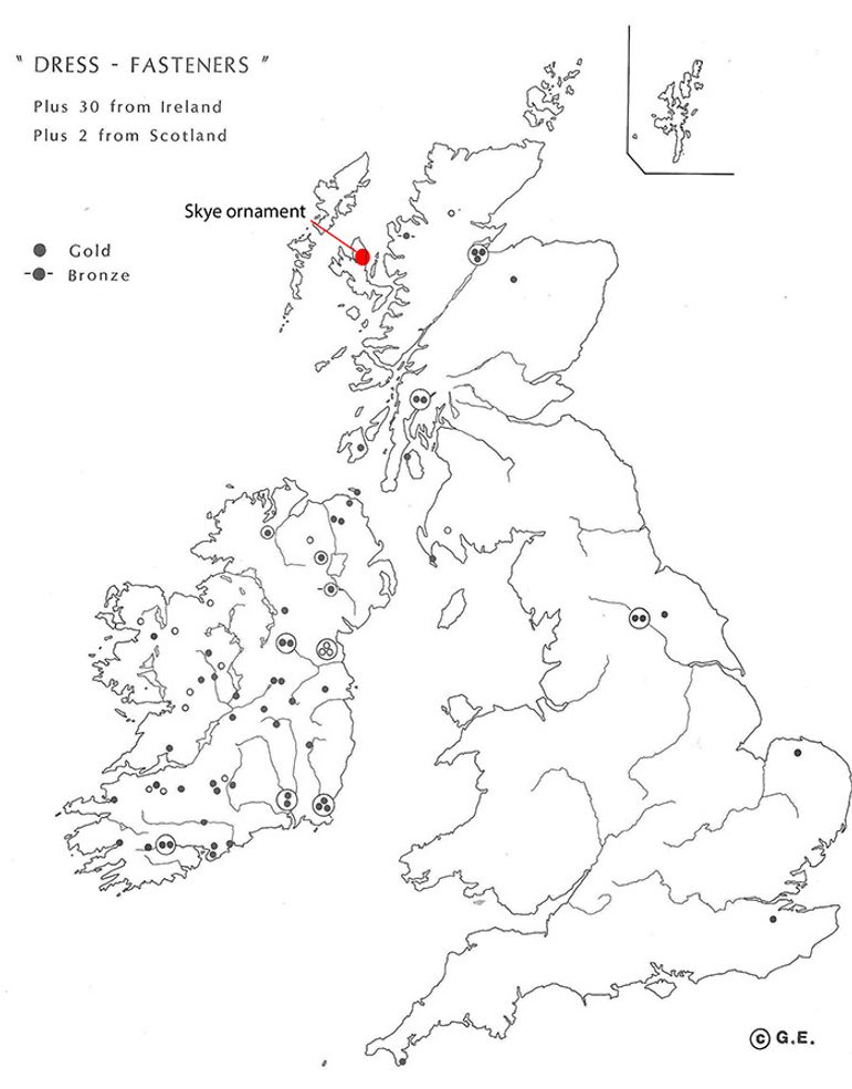 The distribution of ‘dress fasteners’ in Britain and Ireland (adapted from Eogan 1994, ‘The Accomplished Art’, Figure 40).