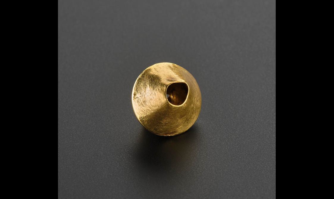 A biconical gold bead from Salthouse, Norfolk. Courtesy of the Trustees of the British Museum/Portable Antiquities Scheme.