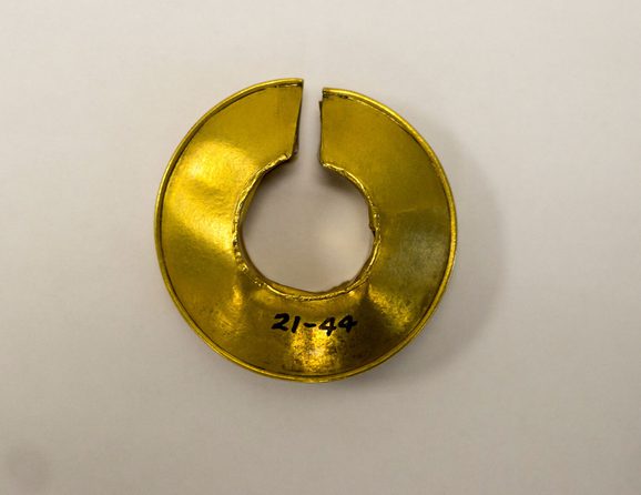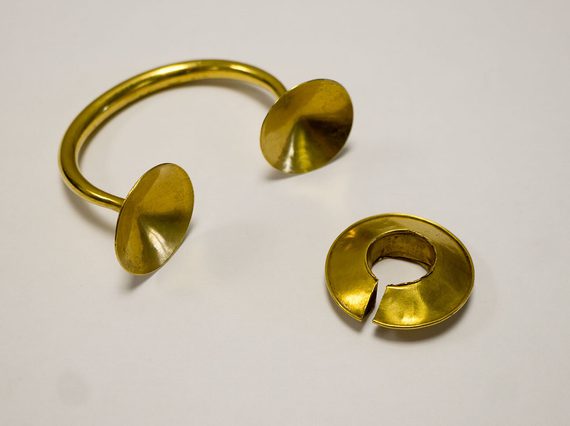 This Late Bronze Age hoard comprises a gold cup-ended ornament and a gold penannular ring or ‘lock-ring’.
