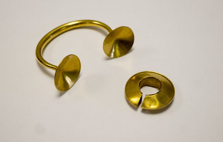 Lastly, the person or people who owned these exceptionally well-made objects must have been of high status. Their ability to procure, possess, wear, and then deposit these valuable and beautiful items in the ground reflects the power that they held in their community. We will probably never know whether the gold objects were buried for safekeeping, or as a religious or ritual act. We can just be thankful that the farmer’s son chose that spot in which to dig in February 1921 and started off a series of events which brought these wonderful objects back into the public realm for us all to enjoy.