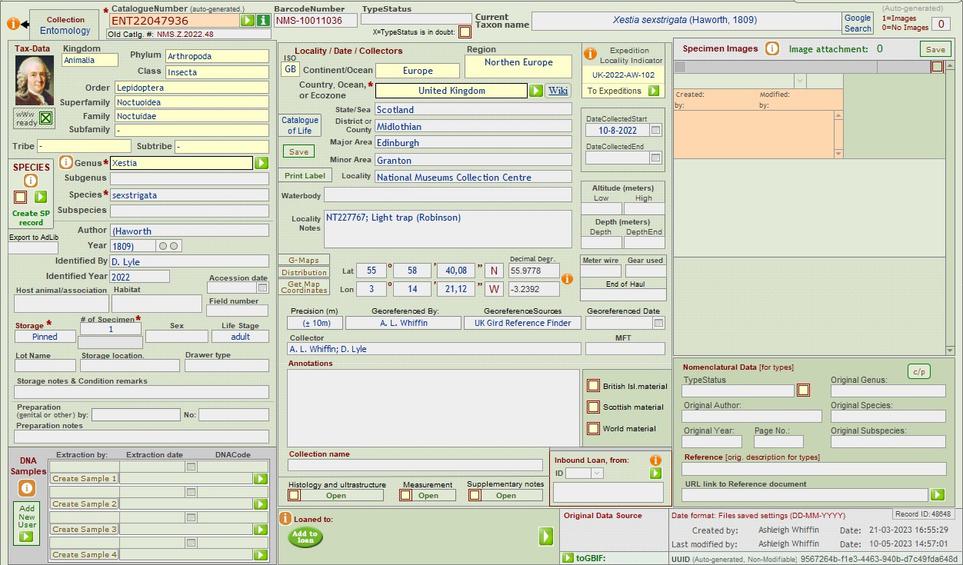 Recording accurate biological taxonomy information can be challenging for entomological collections. There are vast numbers of species, even just in the UK. Curators are not always experts in insects, and never in all insects. Names for species recorded in the collection may be incorrect or outdated.