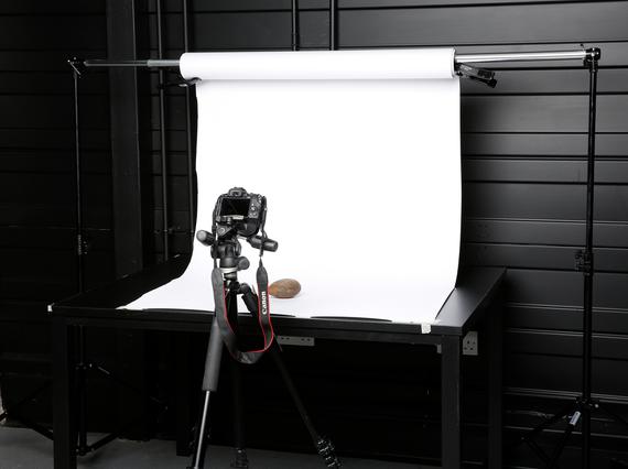 The benefit of purchasing a background support is that you can easily unroll fresh paper and cut off any that is dirty or marked, which is cheaper than using and replacing one large sheet of paper. Place the table in front of your background paper and attach the free end to the front edge of the table. This will create a curve in the paper, giving your images a seamless, clean look.