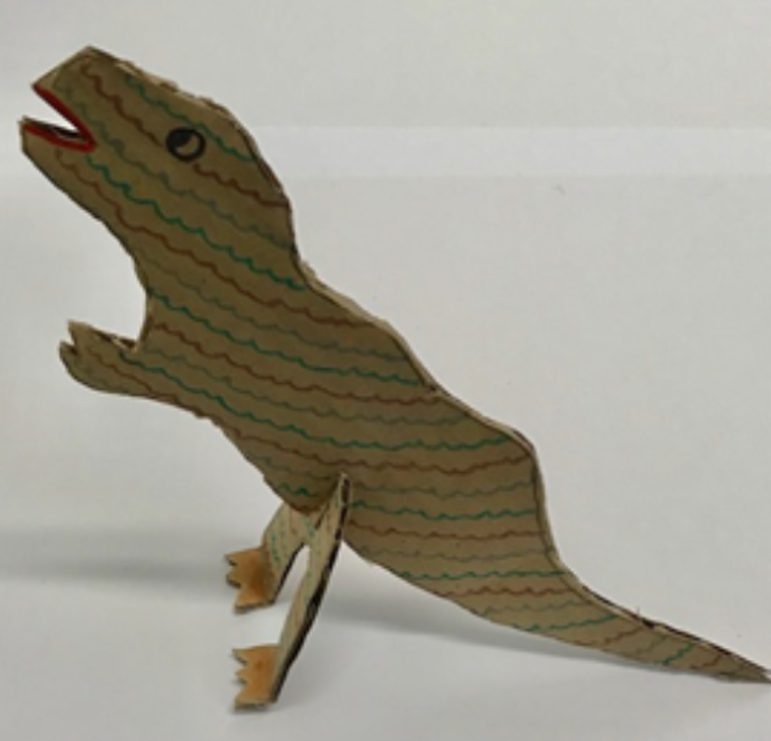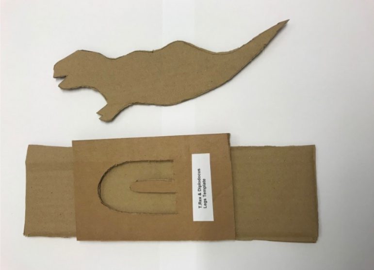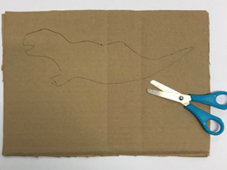 - Get a piece of cardboard - ideally use slightly thicker cardboard (that has a bit of corrugation) as this will help your dino to stand.